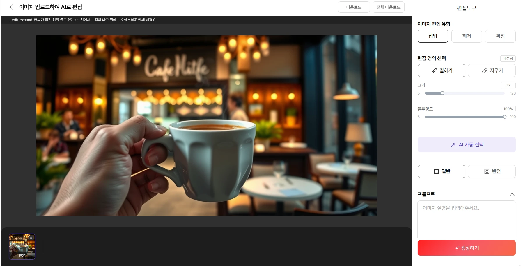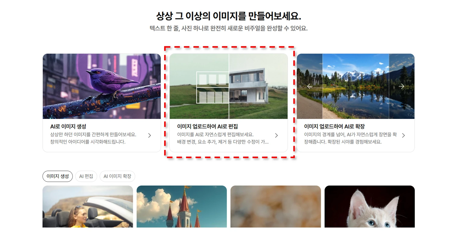 보유한 이미지 (AI 생성 이미지 포함)을 업로드 하여 편집이 가능합니다.