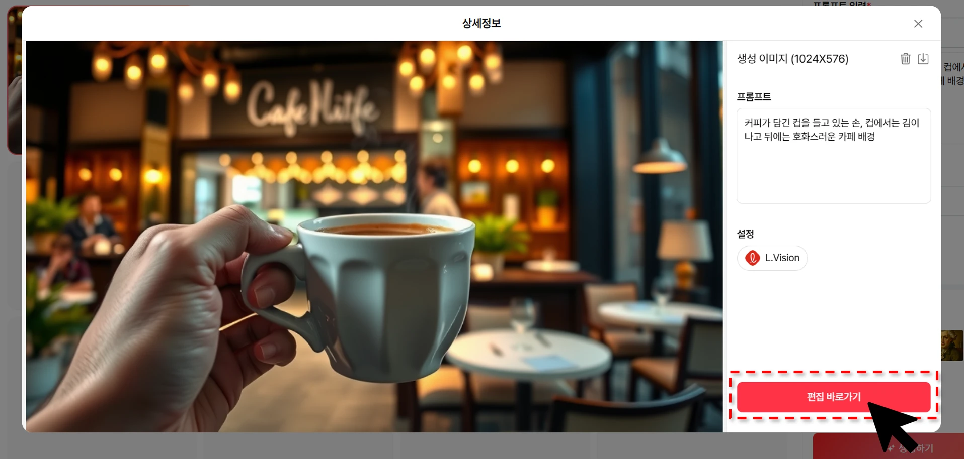 AI 이미지 생성 메뉴에서 생성된 이미지를 클릭하여