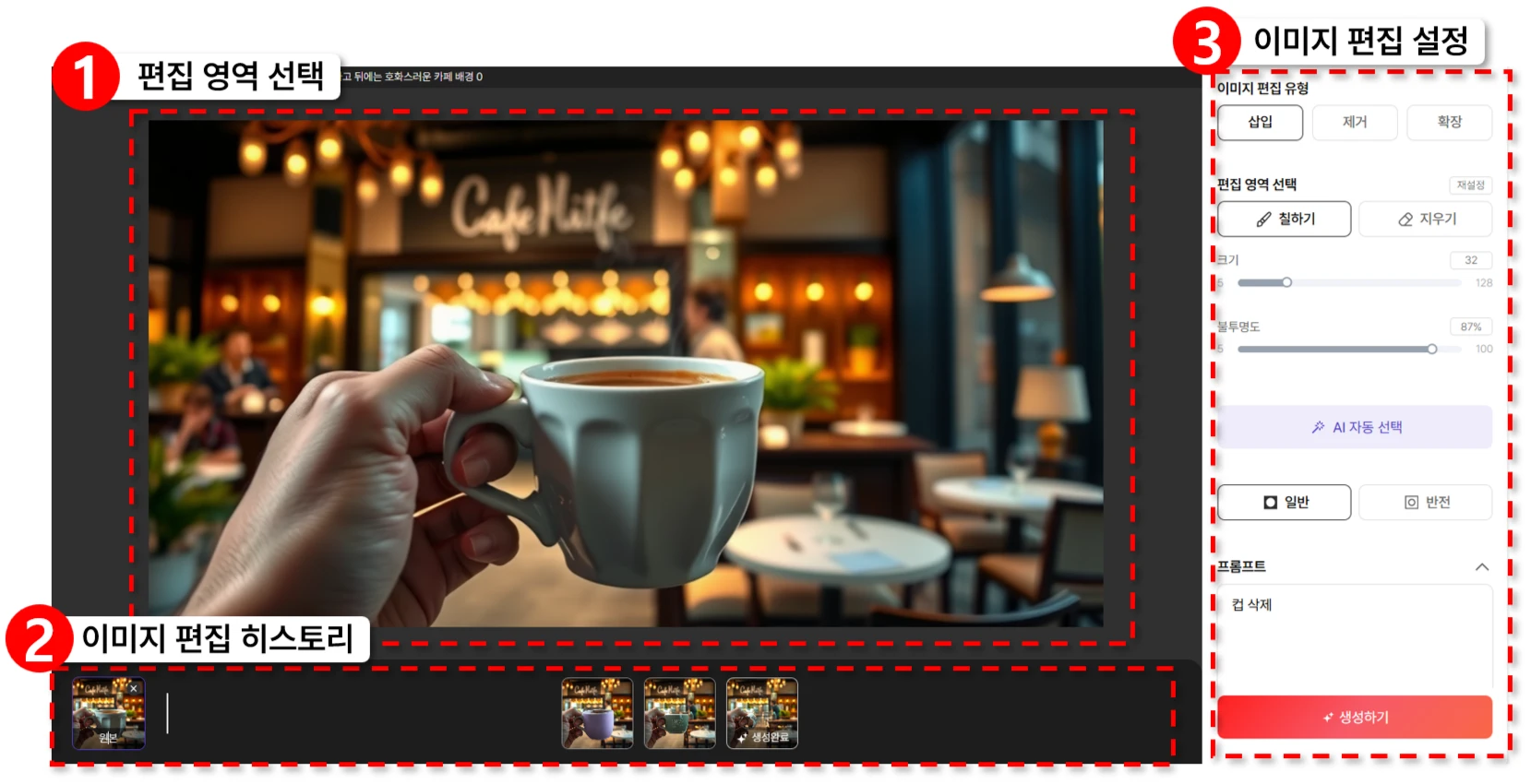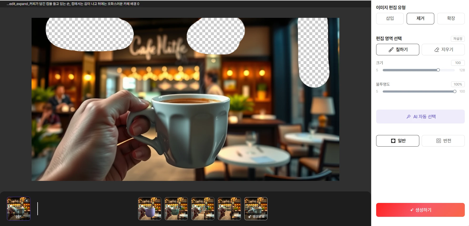 으로 원하는 영역을 지정해 다양한 프롬프트를 입력하면 해당 영역 안에 프롬프트가 반영되어 이미지가 수정 됩니다.