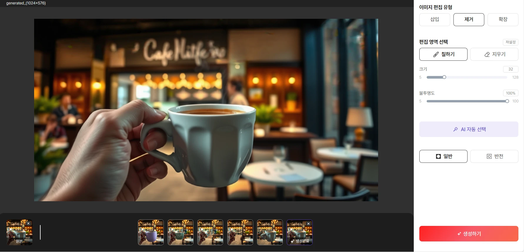 원본 이미지 또는 원본 이미지를 기반으로 편집한 이미지를 선택하여 연속으로 편집이 가능합니다.