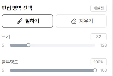 '칠하기'로 선택된 영역 중 일부를 삭제합니다.