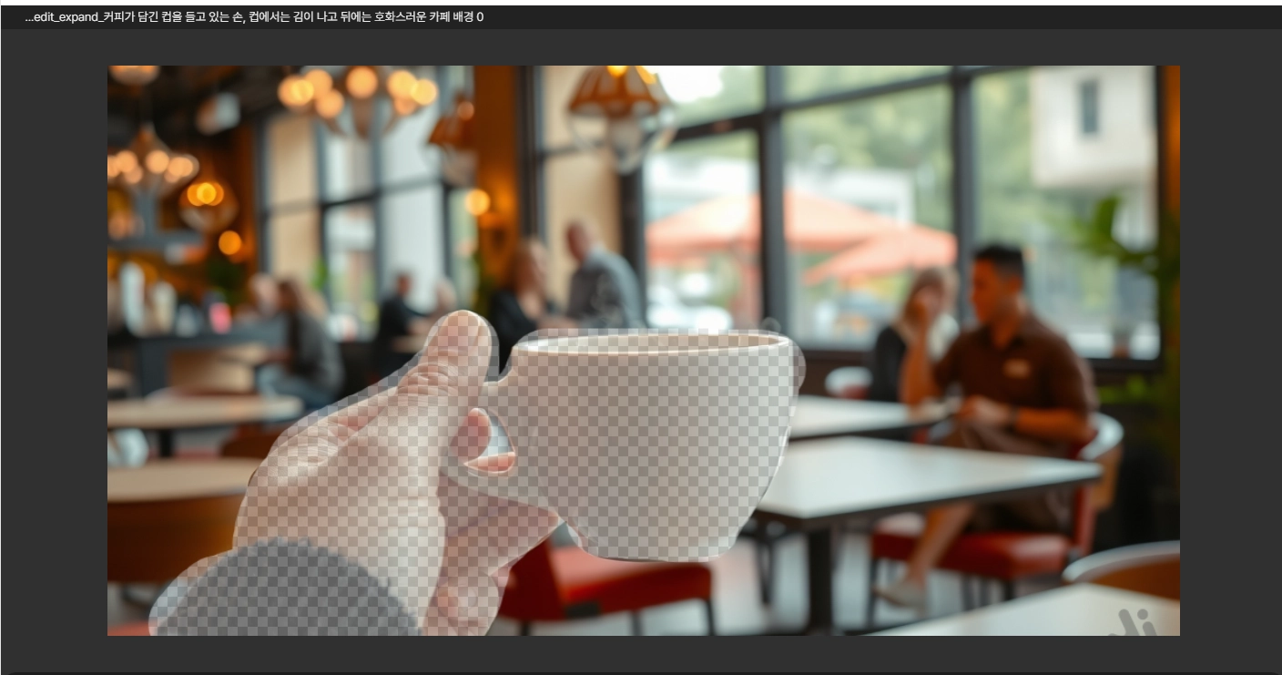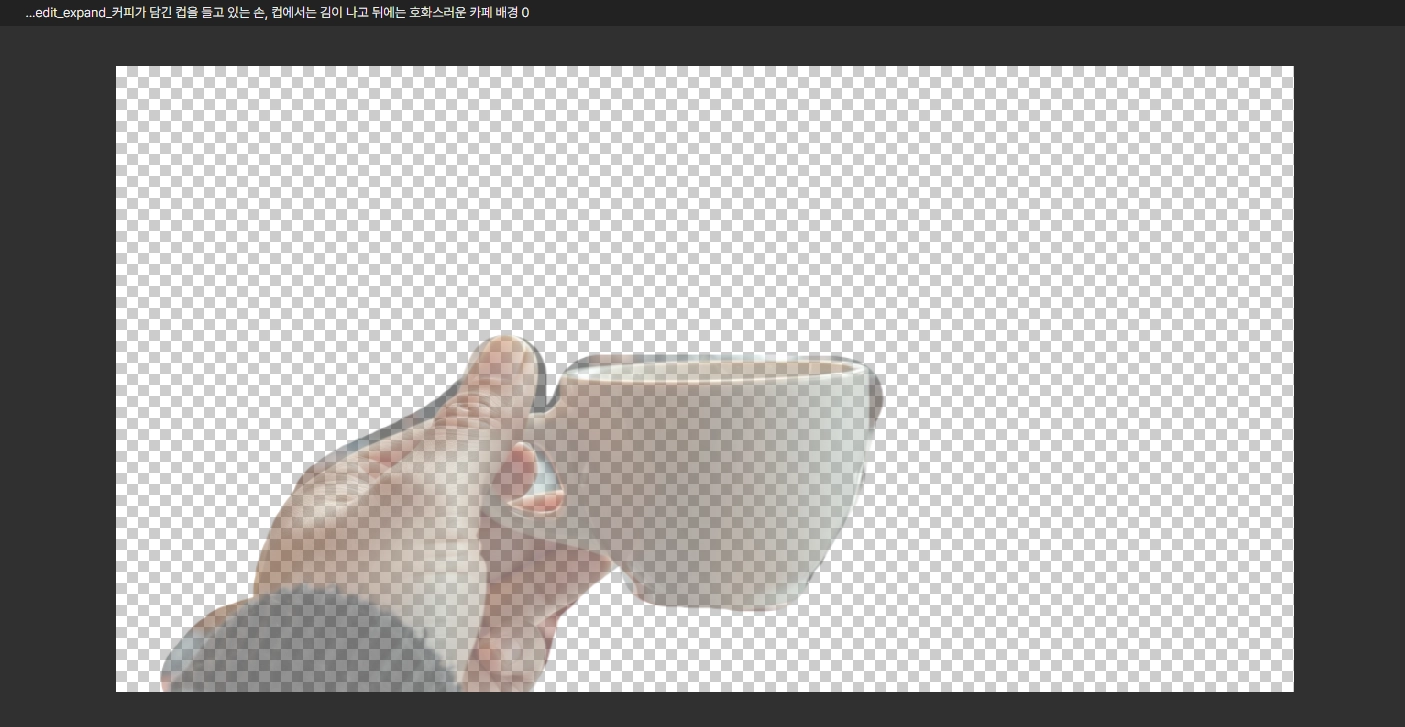 손과 커피잔 이외의 배경 부분이 선택되었습니다.