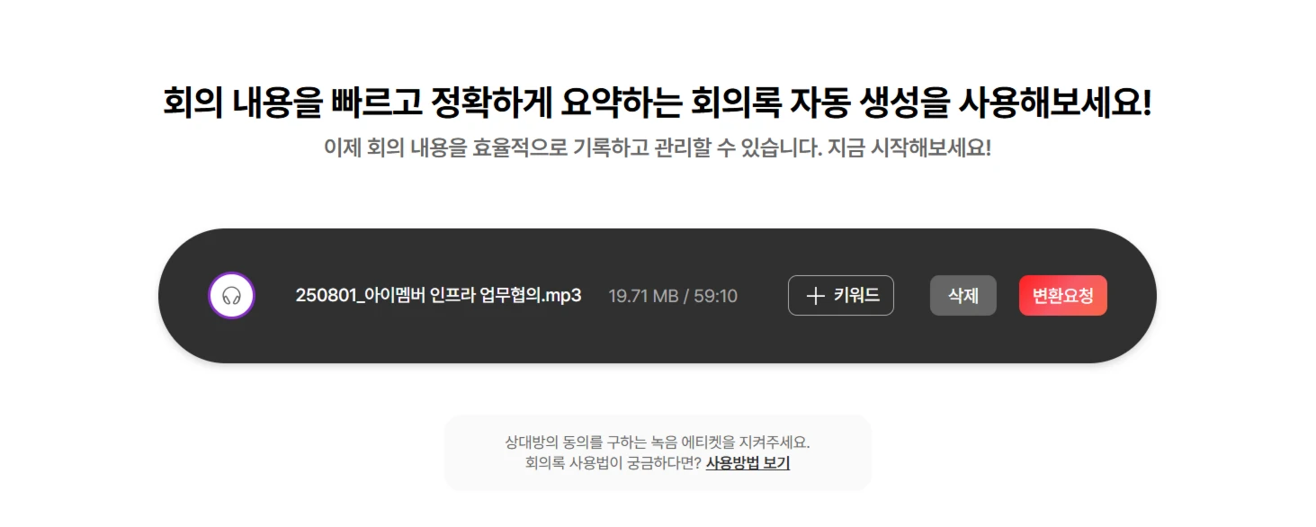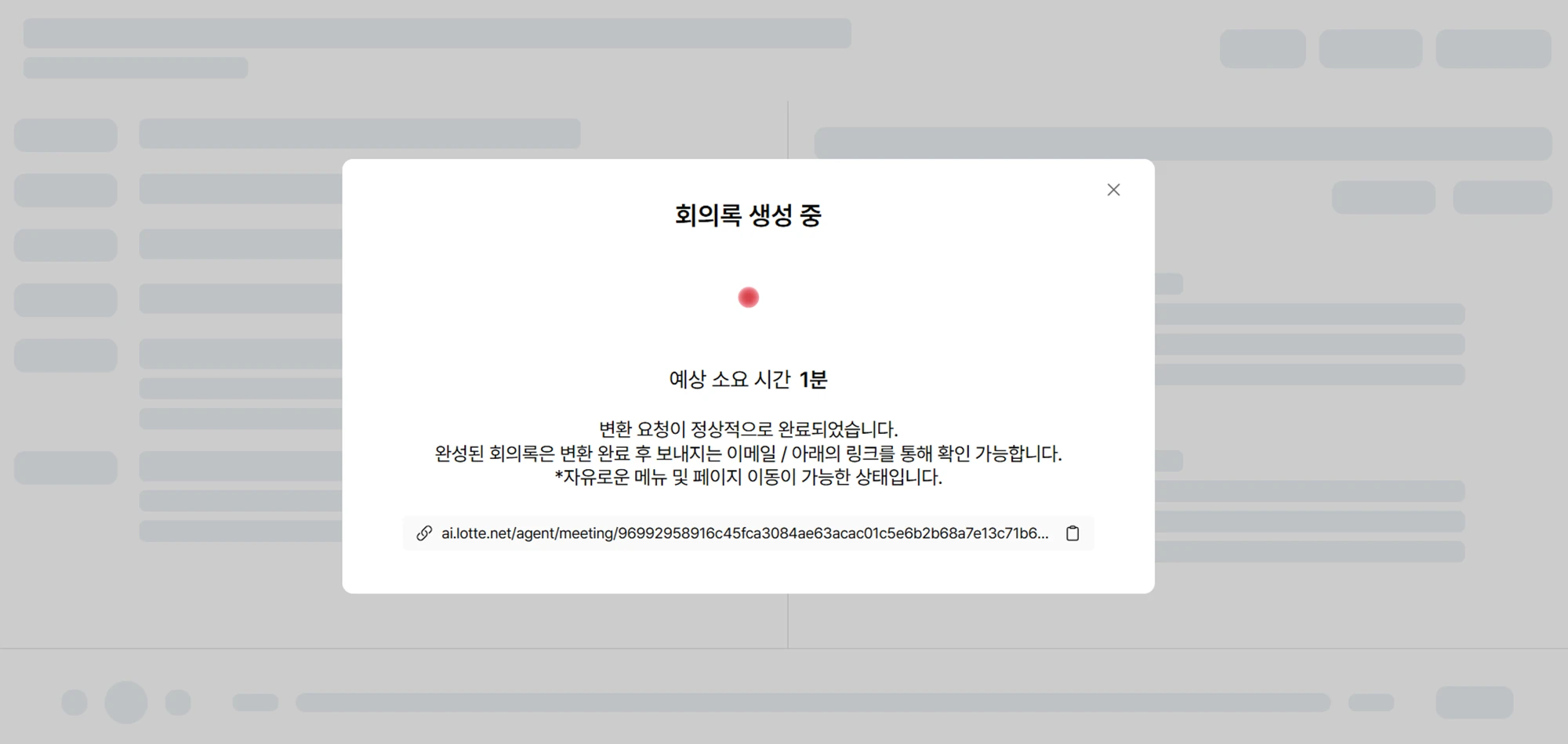 버튼을 클릭하면 회의록 변환이 시작됩니다.