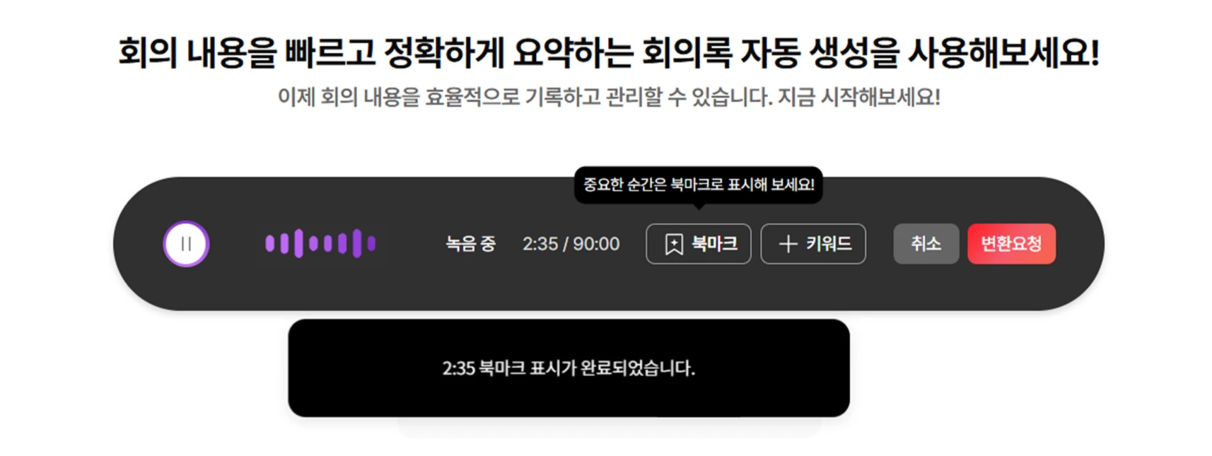 회의록 확인 시 북마크한 주요 순간들을 쉽게 확인할 수 있습니다.