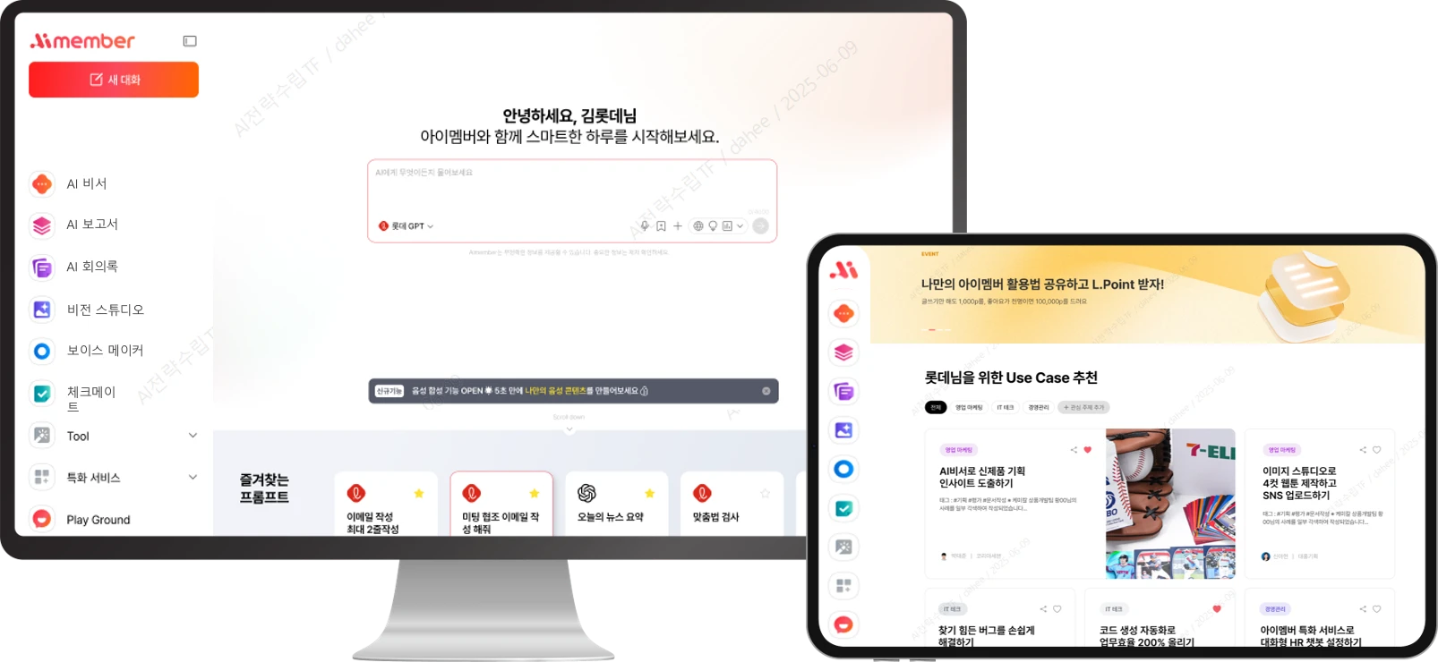 아이멤버는 다양한 AI 모델 사용이 용이한 One-UI 환경을 제공합니다.