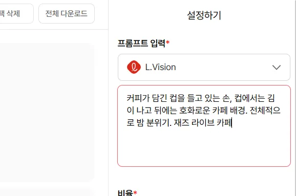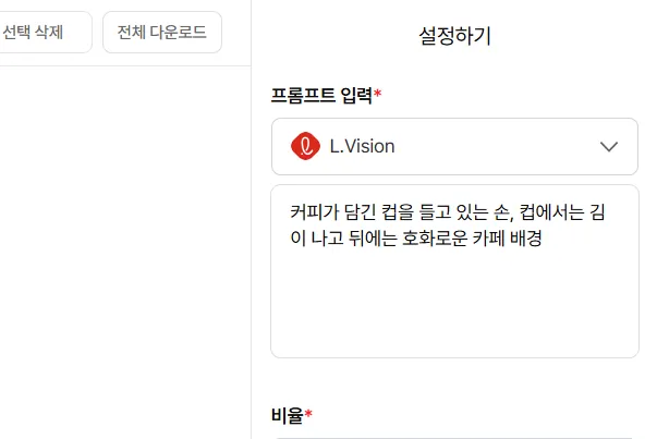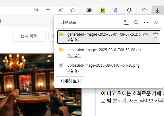 [전체 다운로드]를 통해 해당 세션에서 생성된 이미지를 한 번에 다운로드 받을 수 있습니다.