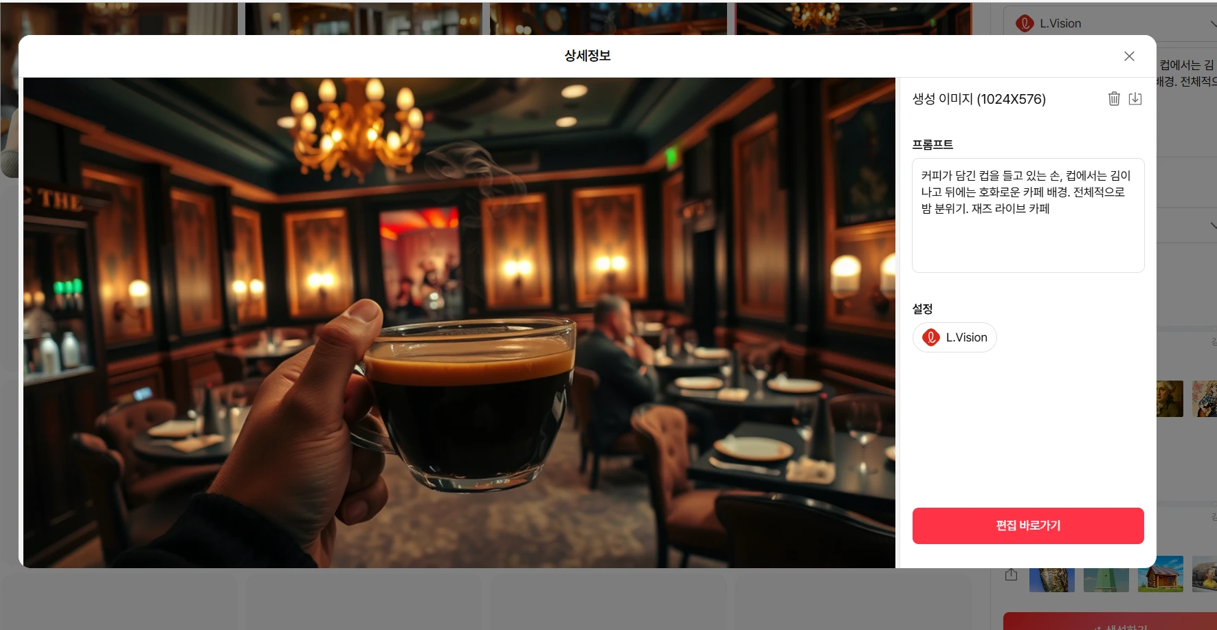 자체 모델 L.Vision은 롯데에서 학습시킨 자체 AI 이미지 모델로 비율 및 구도 등 다양한 옵션을 제공합니다.
