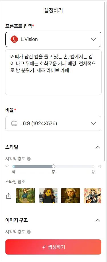 ② 프롬프트 입력: AI 이미지 모델하고 프롬프트를 입력해서 AI 이미지를 설정할 수 있습니다.