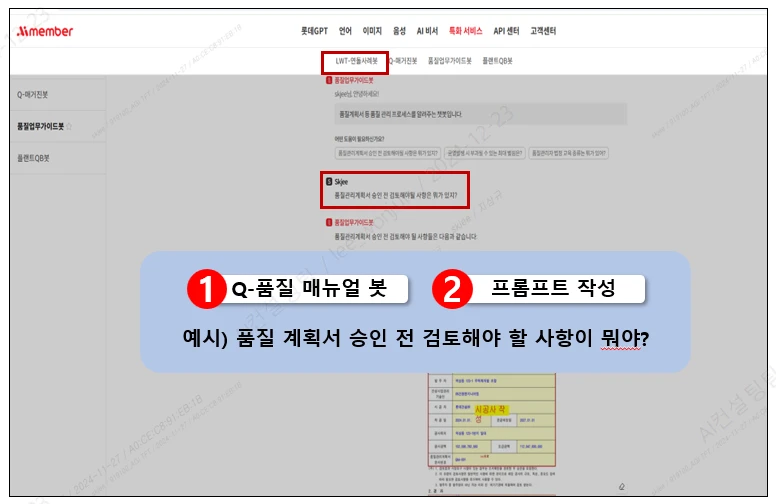 Q-품질 사례 봇 | 시공 품질 사례 및 각종 시방서, 지침 내용 (전 본부 | • 단열공사의 하자사례와 체크 포인트 및 대책이 무엇인가요? • 거푸집 동바리의 품질 관리 포인트는 무엇이 있나요?? |