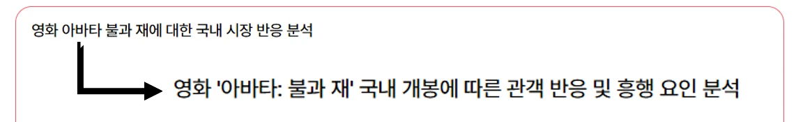 구체적이고 명확한 주제일수록 더 좋은 결과물을 얻을 수 있습니다.