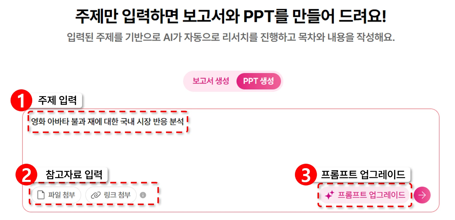 생성하고자 하는 프레젠테이션의 주제를 입력합니다.