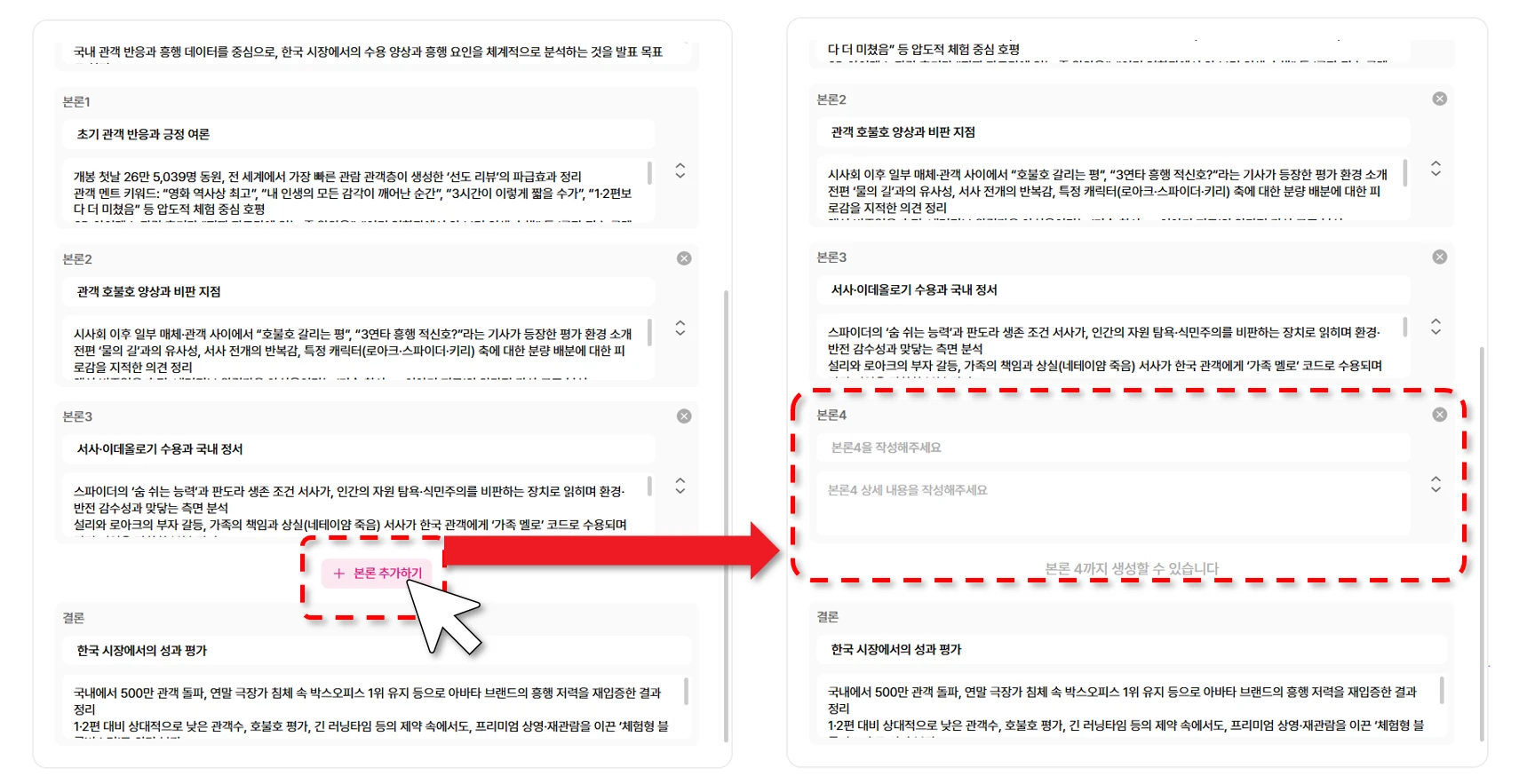 본론은 최대 4개까지 추가할 수 있습니다.