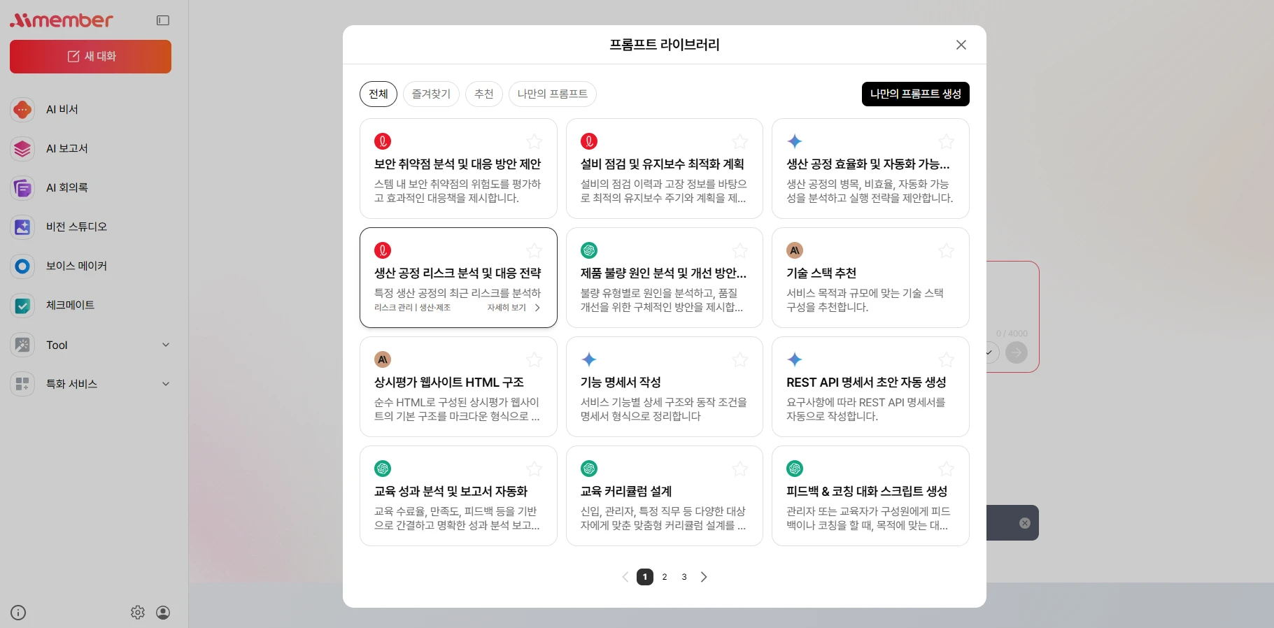 필요한 작업 내용과 상황에 맞춰 제공되는 프롬프트를 참고해 활용할 수 있어요.